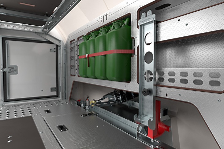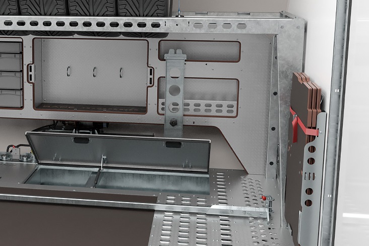 Több pótkerék és gumiabroncs szállítása egyszerűen megoldható egy magas szintű gumiabroncs-résszel. A kialakítása a kerekeket az átlagos motorházfedél-magasság fölé helyezi, így hasznos helyet megtartva a platón. A szállított kerekek biztonságát és védelmét egy egyedi hevederrendszer biztosítja.